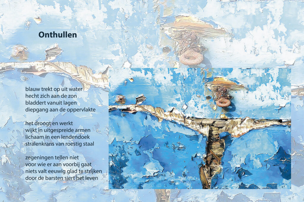 Op 29 oktober 2025 overleed Heleen van Tilburg. Een markant en enthousiast mens. Een duizendpoot die ondanks (forse) fysieke uitdagingen het leven omarmde. Als fotograaf maakte ze vervreemdende, abstracte beelden, vol verhalen. Samen maakten we de expositie ‘Door de barsten siert het leven’. Het gedicht ‘Onthullen’ was daar onderdeel van en gaf de expositie zijn naam.